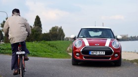 Nem mondjuk, hogy nem ráz, de nagyon jó a futóműA futóműről nem meglepő módon elismerően beszélhetek. Ebben a méretkategóriában még mindig egyedülálló a többlengőkaros hátsó felfüggesztés, az igényes konstrukció pedig minden pillanatban érződik. Kényelmes rugózásról, finom ringatózásról ne is álmodjunk, azonban a MINI keménysége ellenére sokat javult a komfort terén. Külön öröm, hogy a defektmentes abroncsok nem szériák, így még a tesztautó peres 17 colos, 205 mm széles papucsaival sem volt elviselhetetlen a rázkódás, az alapból járó 175 mm széles 15, vagy 195 mm-es 16 colos gumikkal pedig még jobb a helyzet. Aki pedig nem szereti a kompromisszumokat, első ízben rendelhet állítható lengéscsillapítást a MINI-hez, aminek köszönhetően olyat tud az autó, amit eddig még soha: viszonylag finoman csillapítani. Így is teljesen elviselhető a helyzet, azonban tény, hogy 160 ezer forintot mindenképp megér az opció. A másik oldalon a szokásos gokartos vezetési élménynek örvendhetünk, s a MINI továbbra is gyorsan, egzaktul fordul, azonnal reagálva a kissé mesterkélt elektromos kormány mozdulataira.