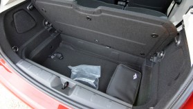 Egész használható lett a dupla padlós csomagtérTovábbi öröm, hogy a második sorban sem kínszenvedés utazni, és még ha égimeszelőként nem is élveztem maradéktalanul az ücsörgést hátul, nagyjából 180, sőt, akár 185 centis magasságig egészen kényelmes az autó, s további jó hír, hogy néhány kategóriatárssal ellentétben a fejtámlák magasra húzhatóak ki. Elöl tökéletes helyen vannak az ajtók könyöklői, s az ülések közötti, állítható dőlésszögű illetve felhajtható kartámasz is jól pozícionált, egyedüli baja, hogy lehajtva beleakad a behúzott kézifék. Tárolókból szerencsére nincs hiány. A tesztautóban az alapülések kaptak helyet egyszerű szövetkárpitozással, és megállapíthatjuk, hogy ennyire nem volt kényelmes egyetlen MINI sem: a székek elegendően nagyok, szépen tartanak, kényelmesek, s a feláras sportülésekkel ellentétben a testesebb emberek számára is épp elég szélesek. A csomagtartó szintúgy gyarapodott: űrtartalma 160 literről 211-re ugrott (vagyis akkora, mint egy új Swifté), a különbség pedig a gyakorlatban óriási: míg az előző generációé nem sok mindenre volt jó, ide ügyesen lehet pakolni, a padló alatti rekesz pedig tovább növeli a praktikumot, továbbá egy mozdulattal felhajtható, így egybenyitható a tér.