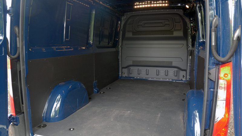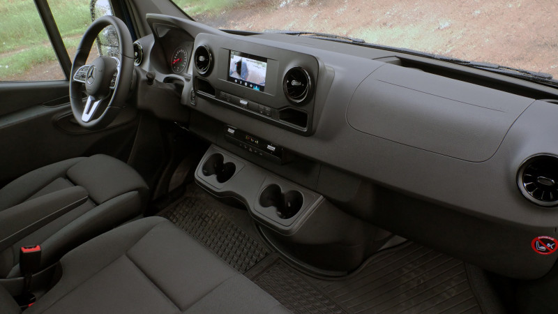 A vezetőfülke egyébként – nem meglepő módon – igencsak ergonomikus és komfortos lett, a feláras kihúzható combtámaszos ülés pedig valóban rendkívül kényelmes, miközben a zajszigetelés is jó, egyedül a turbó fújtatása szűrődik be a megszokottnál sokkal jobban az utastérbe. A sofőr számára tehát adott a kellemes munkakörnyezet, az autó pedig olyan sokféleképpen variálható a kialakítás és a felszereltség terén, hogy garantáltan minden ügyfél meg fogja találni a számára tökéletes Sprintert.