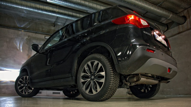 Igazán kellemes futóművet tett az autó alá a Suzuki, a Vitara ugyanis a viszonylagos magassága ellenére is jól, stabilan kanyarodik, miközben a szériában járó nagy kerekek ellenére a komfortról sem kell lemondanunk. A kellemes középutat választó modell ráadásul az összkerékhajtás miatt, főleg sport módban kanyarodik jól, a hátsó hajtást is munkára fogva a szokásosnál mérsékeltebb orrtolás jellemzi. Mindemellé a típusra jellemző, kissé érzéketlen kormányzás jár.