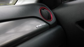 A bőr hatású kárpittal bevont ülések nem csak szépek, de kényelmesek is, a puha matériából pedig még az ajtókárpitra is jutott. Ellenben a műszerfal – amolyan furcsa kontrasztként – emlékeztet a modell valódia piaci pozíciójára, hiszen meglehetősen kemény, rideg műanyagból készült. Becsületére szóljon, hogy textúrája miatt nem hat olcsónak.
