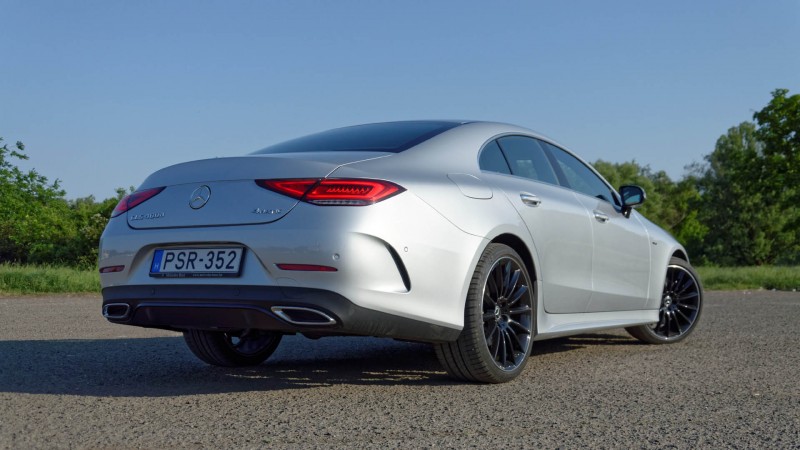 Aki ezt szeretné, annak iparkodnia kellTesztautónk egyébként a csillagosoktól mostanra megszokott, az új modellek bevezetésekor elérhető Edition 1 limitált szériás csomaggal volt felszerelve, amihez az AMG külső csomag és a 20 colos, kifejezetten látványos fekete keréktárcsák is jártak – ezzel tovább hangsúlyozva a sportos vonalat. Profilból egyébként szinte semmit nem változott az autó, amit nem is bánunk, hiszen ez adja a CLS savát-borsát, ettől lesz mindig nagyon könnyen felismerhető a kategóriateremtő modell. Hátul szintén a szögletes megoldások dominálnak, köszönhetően a LED-es fényszóróknak. Az újdonság tulajdonképpen nem csak sportosabb, de letisztultabb is lett elődjeinél.