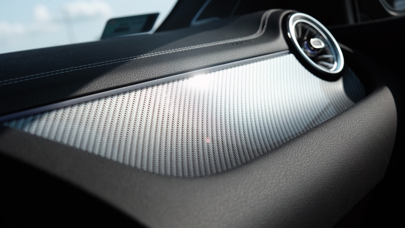 A betétek is sötétek, cserébe a hangulatfény feldobja a csupa fekete utasteret