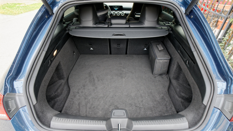 Ez eddig egy nagyon nagy kanállal a jóságból – ugye senki nem gondolta azt, hogy mindez nem jár kompromisszumok nélkül? Tulajdonképpen az a tény, hogy a két különböző hajtáslánc egyáltalán komoly észlelt megvonások nélkül befér a 4,69 méter hosszú CLA Shooting Brake-be, maga egy mérnöki csoda. Hiszen csak az akkupakk úgy 150 kilogramm, aztán szinte bottal üthetjük a nyomát. Na jó, a csomagtartó 505-ről 440 literesre csökkent, ami leginkább a padló alatt üregek kis méretén érhető tetten – a 220 V-os töltő már csak fent fér el, de ez máshol sincsen másképp. Az akkumulátorok így a hátsó ülések alá bújnak, méghozzá annyira, hogy a kipufogó nem is fut végig az autón, hanem középtájon végződik.