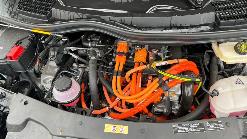 A tesztelt verzió is 3,2 tonnás össztömeget tud, ami lényegében 832 kg terhelhetőséget takar. Hossztól függően 2 vagy 3 EUR-raklapot is elnyelhet, a Mercedes pedig mindeközben kiemeli, hogy a 2 m alá beférő magasság miatt a különféle garázsokba is feltétel nélkül képes behajtani a villanyos áruszállító. Az elektromotor teljesítménye 85 kW (116 LE) míg a forgatónyomaték 295 Nm. Az aszinkron egység a belsőégésű motor helyére került