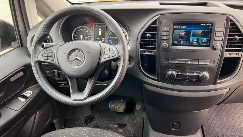 A eVito hajtáslánc-kínálata egyébként egy tagból áll, a tesztre is fogott 116 lovas villanymotor szerepel az extra hosszú verzióban is, egyedül a személyszállító változat kap erősebb, 150 kW-os (204 LE) erőforrást. A kétüléses modell alapfelszereltsége ugyan sovány, de lényegében elégségesnek mondható: a kötelező biztonsági extrákon felül van elektromos ablak- és tükörállítás, valamint bepipálásra került az érintőképernyős központi egység is, ami persze ismeri az Apple Carplay és Android Auto képernyőtükrözési funkciókat. Aki szeretné, tempomattal, sávtartó és egyéb asszisztensekkel bővítheti a listát.