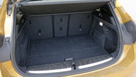 Nem kicsi, sőt, a padló alatt nagy rekesz vanEbből rögtön kiderül, hogy a praktikumot előtérbe helyező ügyfelek kedvence nem feltétlenül az X2 lesz a márka palettáján maradva, hiszen a testvérmodellnél főként fejtérből hátul kevesebbet ad és kevésbé kényelmes, miközben csomagtere is kisebb, igaz, a 470-1355 literes érték nem hangzik rosszul (X1: 505-1550 l). Olyannyira nem, hogy valójában a hátsó sorban is a kompakt méretek dacára egészen nagy lábtérnek örvendhetnek a helyet foglalók, a csomagtartó pedig nagyjából mindenre elég – az üléseket ledöntve pedig szükség esetén egy teljes méretű férfi kerékpárt is betehetünk – kerekekkel a helyén.