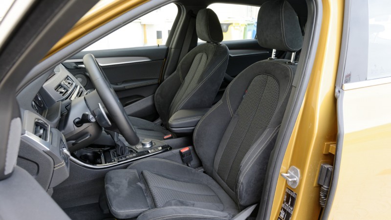 Belül az X1 hangulata köszön vissza. A helykínálat elöl nagyvonalú, hátul átlagos, az ülések jók, az anyagminőség megfelel a kategória elvásárainak, az összeszerelés prémiumtermékhez illő.