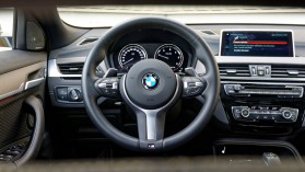 Nem elég sokszínű: alaphelyzetben túl "sportos" a kormányzásA sportos menettulajdonságokról nem csak a motor teljesítménye, de az M Sport és az M Sport X változatok esetében alapáron járó sportfutómű is gondoskodik, noha biztosan lesznek olyanok, akik inkább csak a látványt szeretnék, de a fokozott keménységre nem vágynak – nekik ajánljuk az adaptív csillapítást, ami tesztautónkból kimaradt. Ennek hiánya érezhető is volt a 19 colos abroncsokkal, igaz, a sportos spektrumon belül ezúttal így is elfogadható rugózási komfortot kaptunk. Ez pedig azt jelenti, hogy egy állítható lengéscsillapításű, ‘épeszű’ méretű (mondjuk 18 colos) kerekekkel szerelt X2 biztosan egészen kellemesen rugózhat, érdemes lehet hát áldozni a kényelemért a megjelenés oltárán. A sportos beállítás hozománya, hogy ha akarjuk, nagyon dinamikus az autó: a középállásban már-már túl ideges kormányzással azonnali irányváltással, villámgyorsan irányítható, virgonc és könnyed, még ha kicsit kemény is a kormánymű szervózása.