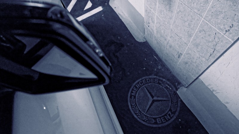Hogy helyén kezeljük: a GLE tükre sötétben Mercedes emblémát világít