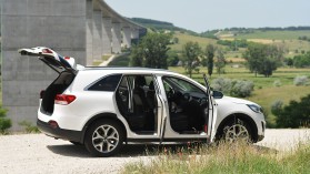 A Sorento pedig fél lábbal a prémium szegmensbe kíván belépni, amihez az eddigiek alapján jó úton jár. Az ambiciózus célnak megfelelően a zajkomfort javítása fontos szempont volt a fejlesztés során, s jelentős mértékben megnőtt a szigetelések mennyisége is. Olyannyira, hogy például a 2,2 literes dízelmotor jobban háttérbe szorul, és csendesebb, mint mondjuk egy BMW X3 négyhengeres öngyulladósa, és az autópályás hangerőmérés során is nála van az előny – a Santa Fét még éppen hallható differenciával lekörözve.
