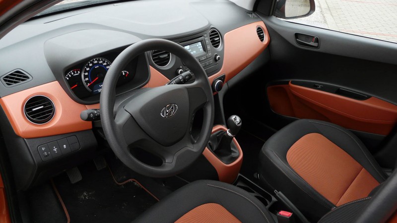 Vesszőparipám az ülés, de most nem lehet kifejezett panaszra ok, elég széles az ülőpad, miközben oldalra is tart, és nemcsak hölgyeknek lehet kényelmes. A hátul ülőkre is gondoltak, a fejtér optimálisan lett kialakítva, nincs szűkös kabinérzés, és két ISOFIX rögzítési pont is jár a gyerekeknek. Az autóban az anyaghasználat jobb a vártnál, a gyáriak igyekeztek mérsékelni a kellemetlen műanyagokat. Ezekkel leginkább a műszerfalon találkozhatunk, azonban a kombinált színhasználat miatt sikerül erről a figyelmünket elterelni és a praktikumra irányítani, amiben a kis Hyundai női szemmel is jól teljesít. Minden doboz, tartórekesz kézre esik, jól elférnek a kulcsok, apró tárgyak, sőt a vizes palack is. Az ajtóba épített dobozok ugyanis palacktartóval is rendelkeznek, ezért nincs többé ülés alá gurult flakon, rendetlenség, részemről tehát abszolút dicséretes a tervezés. Az alapból műanyag kormány tapintásra olcsóságot sugall, amelyet csak 95 ezer forint ellenében, az ülésfűtést is megrendelve száműzhetünk. A volán használatát tekintve vezetés közben némi ponttalanságot, a szervózás túlzott és nem egyenletes érzékenységét észlelhetjük.