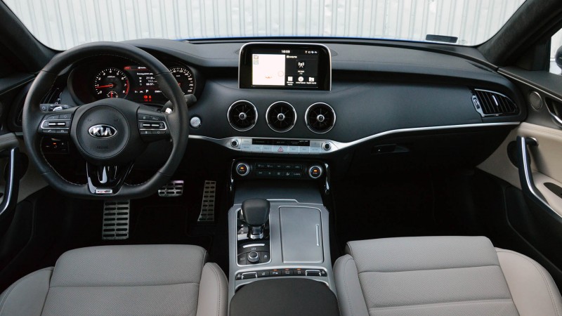 GT Line szinten a Kia tulajdonképpen tulajdonképpen minden elképzelhető extrát beletömött az autóba: így fűthető és szellőztethető, memóriás bőrfotelek, minden mobiltelefonos kapcsolódási formát ismerő, gyorsan és jól multimédiás és navigációs rendszer, vezeték nélküli mobiltöltő, automatikus parkolórendszer, jó minőségű és informatív (az Arteonnal ellentétben szélvédőre vetítő) head-up kijelző, tetőablak és egyéb nyalánkságok is megtalálhatóak a listán. Az összeszerelés egyébként példás, így útközben semmilyen nesz nem zavarja meg a vezetés élményét, azonban egy-egy fekvőrendőrön egyenetlenül áthaladva hallat némi nyöszörgést az autó, mintha csavarodna a karosszéria, holott vezetés közben ezt egyáltalán nem észleljük – talán a tetőablak okozhatja.
