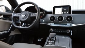 Rengeteg funkció, mutatós kezelőszervekkelKépzeljék el azt a szürreális képet, hogy egy Kia kilinccsel előre érkezik meg a kanyarba. A Stingerrel ez lehetséges, és a 255 lóerő pont elég arra, hogy komolyabb erőlködés nélkül küldjük játékba az autó fenekét, miközben nem érezzük azt, hogy meg akar minket ölni. A prémiumokon innen csak a Kia tud ilyet a kategóriában, és ha mindez még nem lenne elég, az alig több mint 6 másodperces 0-100-as sprint sem éppen megszokott ebben a szegmensben. A méretes ménes a hétköznapokban minden helyzetben elegendőnek bizonyul, legyen szó egy gyors kilövésről vagy éppen egy könnyen letudott előzésről. Sajnos a négyhengeresből nem igazán sikerült – és valószínűleg kifelé ez nem is volt cél – olyan dallamokat elővarázsolni, ami tovább növelné az élvezeti értéket, ellenben a hangszórókból jövő, állítható erősségű műhang elegendőnek bizonyul, hogy ne csorbuljon az élmény.