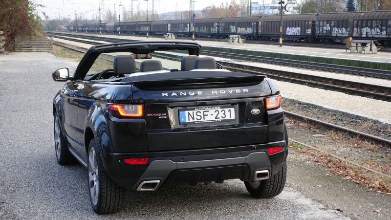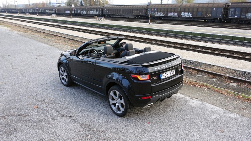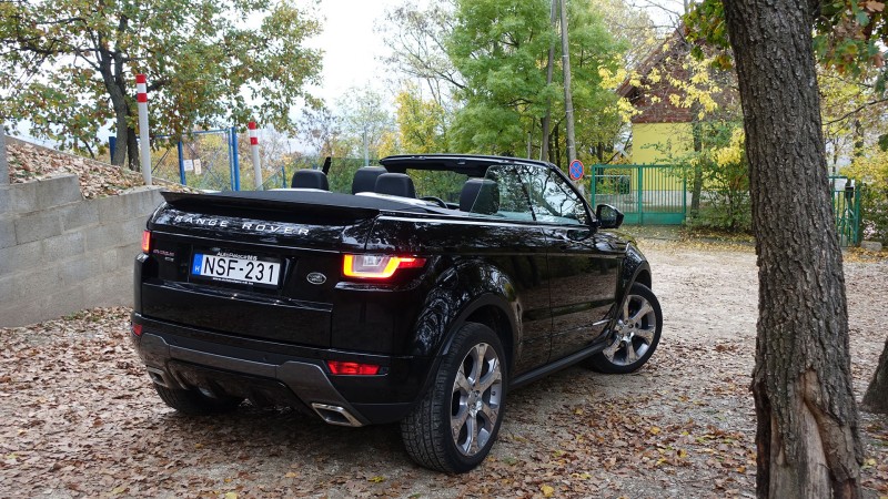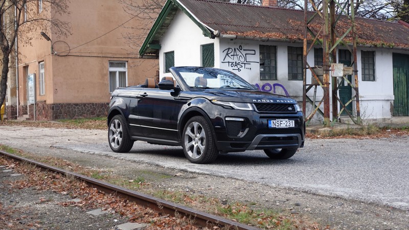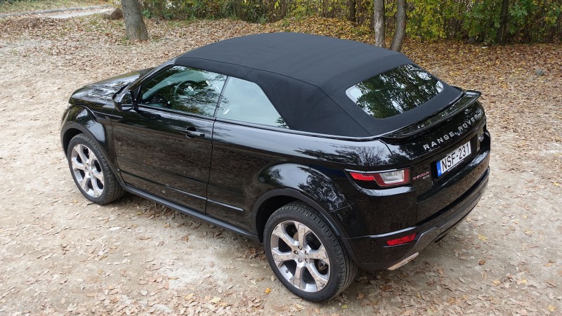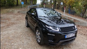 Ni-ni, egy Evoque; de nem ám akármilyen!A magas övvonal valamelyest elvesz a szabadságérzetből, de összességében nyáron óriási élmény lehet a Range Roverrel nyitott tetővel korzózni, s a modell tud valamit, amit senki más: terepezés során is élvezhetjük a kabriózást, hiszen az Evoque a korlátozottabb terepszögek ellenére tisztességes terepjáró képességekkel rendelkezik, a kabrió széria összkerékhajtása szuper, a gázlómélység 500 mm. Egyedül a ‘Dynamic’ kivitel mélyre húzott és látványos légterelői nem éppen a terepezés barátai, azonban a kabrió verziót más megjelenéssel nem lehet kérni, hiszen itt a divat az első. És biztosan sokan megkérdezik, hogy mi az értelme ennek az autónak, de örömmel jelentjük, hogy ugyanaz, mint bármelyik másik kabriónak, csak azzal a plusz élménycsomaggal, hogy itt erdőkben, terepen, földutakon homokon stb. is kiélvezhetjük a nyitott tetős autózást, legfeljebb utána jön némi takarítás...