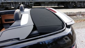 Nagy élmény, de nem egy esős novemberi hétvégén... Nagy szomorúságomra átfogó kabrós tapasztalatokról nem fogok tudni beszámolni, hiszen az autó alig 60 órát volt nálam, ráadásul egy olyan novemberi hétvégét sikerült kifognom, amikor megállás nélkül, gyakorlatilag végig szakadt az eső. Úgyhogy a nulla fok közeli hőmérsékleteket is figyelembe véve csak ‘becsületből’ húztam le a kupolát kétszer néhány perc erejéig. Az opcionális szélterelő vélhetően kicsit javított volna egyébként a helyzeten, de valamiért hiányzott a full extrás modell fedélzetéről. Összességében annyit tudok elmondani, hogy a szélterelő hiánya ellenére meglepően huzatmentesnek bizonyult nyitott tetőnél is az enteriőr, ráadásul a viszonylag meredek A-oszlop révén a kabrióélmény kimondottan jónak számít a mai nyitott tetős autók között. Egyedül egy ülésbe integrált biztonsági övnek örültünk volna, ami sokat javított volna a használhatóságon, így az üléseken ‘nyitottan átvezetett’ biztonsági öv gyakran kicsúszik a helyéről illetve lehúzott oldalablakok esetén a szél miatt ‘bizergálja’ az elöl ülők vállát.