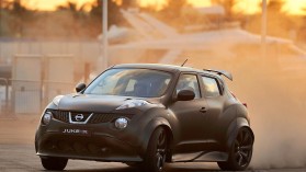 Nem kell energiaital, hogy felpörögjünk.Avagy versenyautóban, ugyanis a szemmel láthatóan kompromisszummentesre hangolt futómű és a négypontos biztonsági övvel rendelkező versenyülések is mutatják: ez bizony egy hamisítatlan show autó – a szériaverzió ennél civilebb köntösben (valószínűleg a GT-R-től kölcsönzött ülésekkel) kerül majd a szerencsésekhez. Egyébként a lemezek alatt tényleg teljes a közösség: a hatfokozatú duplakuplungos váltó és az okos, elektronikusan vezérelt összkerékhajtás is a száguldást szolgálja, amely például a 3,7 másodperces 0-100-as sprinten is tetten érhető. Ez mindössze két tizedmásodperccel szerényebb, mint az alapokat adó első GT-R adata, mindez annak ellenére, hogy a Juke-R még nála is nehezebb 66 kilogrammal.