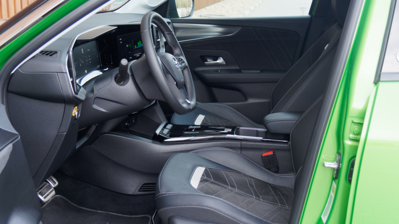 A térkínálat egyébként elöl teljesen rendben van, jól beállítható és alapvetően kényelmes ülésekben foglalhatunk helyet, mindemellett AGR-minősítésű széket még plusz pénzért sem kaphatunk a Mokkához. Nem mintha autópályán ezer kilométereket tudnánk autózni az elektromos változattal, de ide mindjárt visszakanyarodunk.