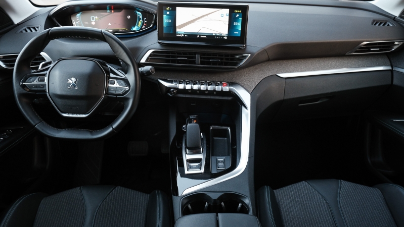 Szerencsére az utastérre sem fogyott el a lendület, sőt, ha lehet ilyet mondani, talán még a külsőnél is izgalmasabbnak található a beltér. A 3008-ba bepillantva egy modern, látványos és letisztult környezet fogad minket, amit a Peugeot i-Cockpit névre keresztelt különleges megoldásai gazdagítanak tovább az apró kormánnyal és a magasra került óracsoporttal.