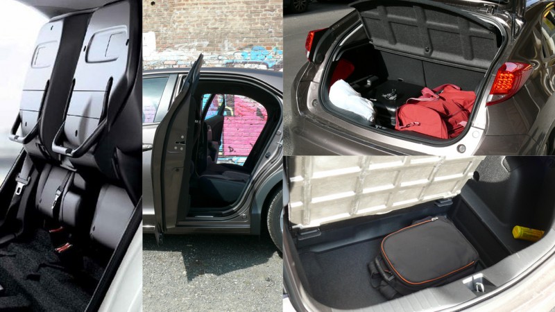 A csomagtartó már alapállásában is méretes, de a felső borítás alatt még egy 70 liter űrtartalmú rekesz is megbújik, amiben egy szabványos repülős bőrönd még éppen helyet kaphat, így a kategória messze legnagyobb csomagterével gazdálkodhatunk. Mindemellett igen ötletes, hogy a hátsó ajtók a beszállást megkönnyítendő 90 fokos szögben nyílnak. Noha hátsó utasaink számára a lábtér több mint bőséges, a fejeknek hátul maximum 180 centiméteres magasságig lehet elegendő a helykínálat, az ennél termetesebbeknek bizony már le kell csúszniuk az ülésben.