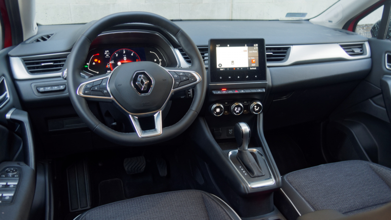 Ha a központi kijelzőről tekintetünk a sofőr előtti régióra téved, megállapíthatjuk, hogy fordulatszámmérőt csak sport módban kapunk a műszerfalra – bár különösebb jelentősége nincs az adatnak egy automataváltós jármű esetében. Kezünket tovább csúsztatva balra azt tapasztaljuk, hogy az ablakemelők kapcsolói kissé hátra kerültek, így nem egészen természetes csuklópozícióval irányíthatjuk a nyílászárók nyitását-zárását. A tükörállító egység furcsaságát a Cliónál kiveséztük, az ott leírtak a Capturre is érvényesek. Egy picit átgondolatlan az is, hogy a csomagtartó nyitásakor behajtott állapotban maradó külső tükrök nem nyílnak ki akkor sem, amikor a vezetőoldali ajtót nyitjuk ki. A tükörhajtó gombot ilyenkor kétszer kell megnyomni, mert az első érintés elvileg a becsukást jelentené, de elsőre következetesen nem történik semmi.