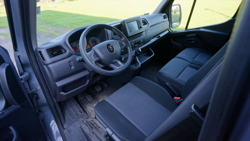 A hétcolos központi rendszer a Renault személyautóiból ismerős egység, amelynek kezelhetősége egy kis tanulás után egyszerűen megvalósítható. A kezelhetőséget javítja a digitális visszapillantó tükör, vagyis a tükör helyét elfoglaló képernyő, ami menet közben nagyon jó hátralátást biztosít, köszönhetően a jármű tetején elhelyezett hátsó kamerának. Ugyanakkor tolatáskor kikapcsol a képe és helyét a még segítőkészebb tolatókamera veszi át, amivel nem is lenne gond, de mivel ez a Master az átlagosnál jóval magasabb (bő 2,5 méter), sokkal több olyan tereptárgy (épületszegély, fa, stb.) akad, ami veszélyeztetheti a kamerát és az autó tetejét. Éppen ezért jó lenne, ha tolatáskor is aktív lenne a képernyő, hiszen így látnánk, ha éppen egy faágban akarunk elakadni – bár teherautós fejjel erre már jobban számítunk.