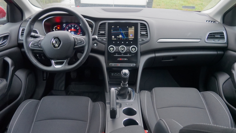 A régi iskola szerint ügyesen adagolt krómozással kell megkoronázni az autó megjelenését. A Mégane-ra is jutott az egykoron népszerűbb dekorációból. Az oldalablakok vízlehúzója, az ál kipufogóvégződések és a hűtőmaszk mellett a kilincsek felső részét is csillogó felület borítja. A modern idők szellemét a sárvédőre helyezett fényes fekete díszcsík testesíti meg. Az utastérben viszont egy kevesek által siratott hiányzóra lehetünk figyelmesek: a vezető környezetéből száműzték a zongoralakkot. Van más, ami leköti a sofőr figyelmét.