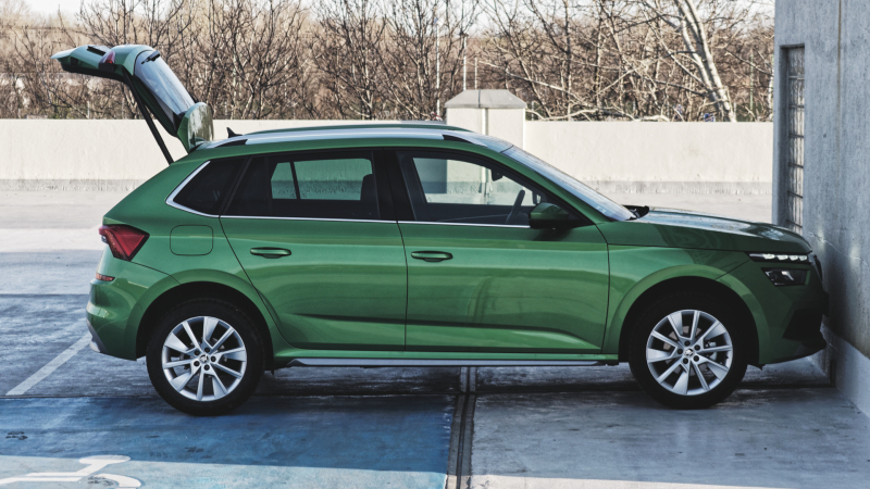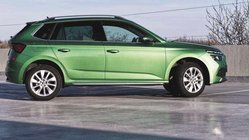 Feltűnő szín, ízléses felni, sötétített ablakok és króm lécek: igazán vagány a Kamiq
