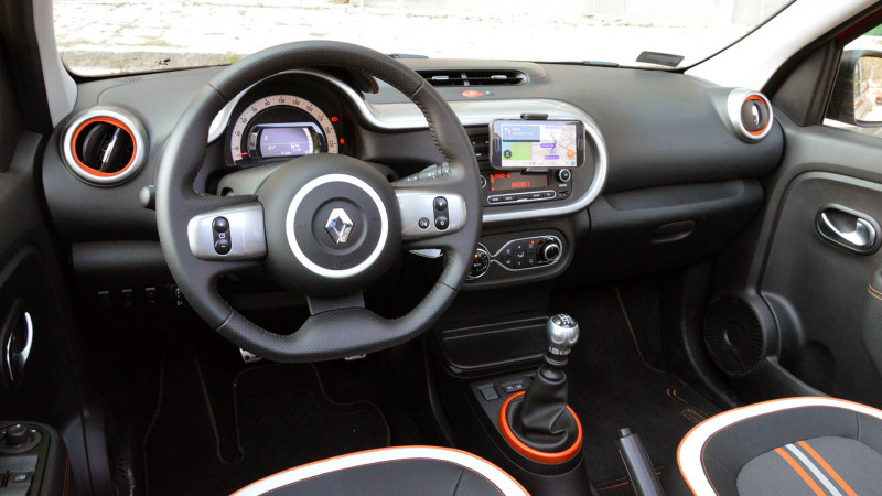 Városi mini létére technológia terén sincs lemaradva a Twingo. Felárért akár beépített multimédiás rendszert, tolatókamerát, ülésfűtést és sávlehagyásra figyelmeztető rendszert is kérhetünk, míg a tolatóradar a GT változathoz alapáron jár – akárcsak a narancssárga belső díszítések, a mutatós ülések, az automata klíma, az eső- és fényérzékelő is. Ezek tudatában a 4,35 milliós alapár ugyan nem túlságosan ijesztő, de azért kifejezetten jutányosnak sem mondanánk, még ha a 109 lovas egység dinamikusan is mozgatja az autót. Ehhez képest a tesztautó már közel 4,76 millió volt az elhúzható tetővel és a látványos, narancsszínű metálfénnyel, de még ezt is meg lehetne toldani az érintőképernyős multimédiás rendszer 200 ezer forintos felárával.