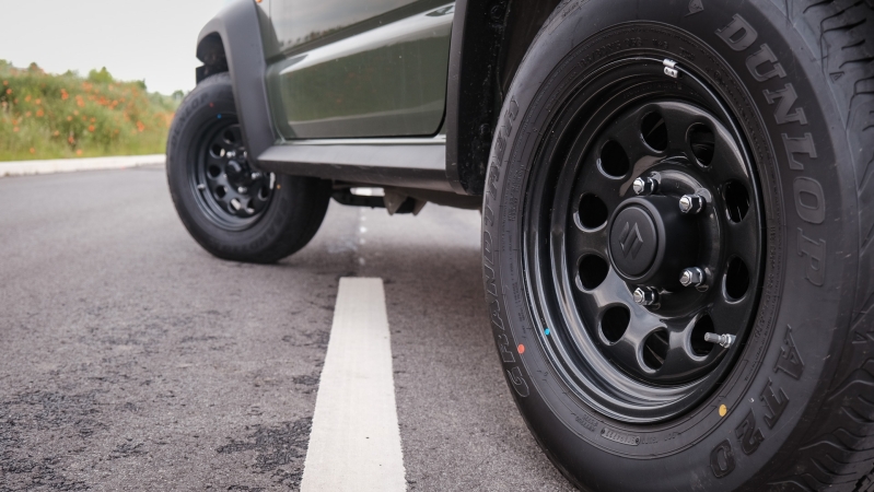 Mindenesetre a Jimny terepen jóformán bajnok, méretei is előnyére válnak ebben. Ott van hogy könnyű, ezért a gravitáció nem feltétlenül kényszeríti bele a Jimny-t a nyomvályúkba, amelynek kihasználásában a mindenkinél kisebb nyomtáv is segít (a szélesség is csupán 1645 mm, ami intim közelségbe hozza az utazókat).