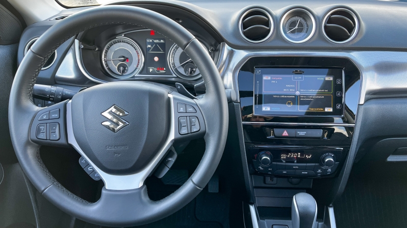 Az érintőképernyős fedélzeti rendszerbe szintén aligha köthetünk bele, néhol többet gondolkozik ugyan, de logikusan épül fel és praktikus, ráadásképp magyarul 'beszél', és dicsérendő módon az Android Auto, illetve Apple CarPlay támogatás sem maradhatott ki. Mindezek ellenére azonban megérződik, hogy a Vitara már jó pár éve a piacon van, korosságát a belseje tekintetében nem tudják leplezni a szakemberek.