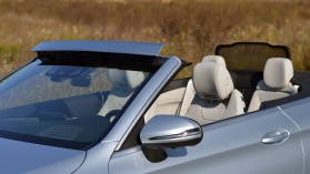 Természetesen a kabriózás a hab a tortán: a tesztautónkhoz ugyan nem járt a feláras, hátsó ülések fölé rögzíthető szélfogó, de felhúzott ablakokkal így is akár 110-120 km/h-s tempóig zavartalanul utazhatunk. Az egyetlen zavaró tényező ilyenkor a hátsó ülésekről visszaverődő, az első utasok derekánál megjelenő huzat – erre azonban megoldás lehet az előbb már említett opció, vagy éppen két hátul ülő utas. Tesztautónkhoz az importőr megrendelte az összképbe csúnyán belerondító AIRCAP nevű légterelőt is, mely gombnyomásra nyílik ki a szélvédőkeret tetejéből – és jár hozzá a két hátsó ülés közötti terelő is. Az első utasok nem különösebben érzik a változást, azonban a hátul ülőket hatékonyan óvja meg a zavaró huzattól.