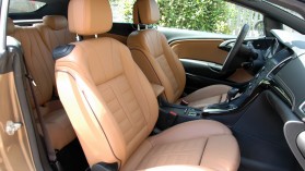 Egy személyautónál ez átlagos képességnek számít, de egy kabriónál mindenképpen tisztességes produkció. Emellett az ülések jól formázottak, s kényelmesek, elöl kihúzható combtámasz, állítható deréktámasz és opcionálisan választható elektromos ülésállítás, valamint ülésszellőztetés (215.000 Ft egy csomagban) gondoskodik a kényelemről. Az elektromos rendszerek esetében pont egy alapszintű műszer, a tankszintjelző viselkedett kissé pontatlanul, ám mindez a tesztelő számára nem meglepő - a mai tesztautók között sajnálatos módon számos példány produkál hasonló viselkedést.