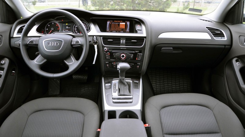 Az Auditól megszokott módon a beltéri összeszerelési- és az anyagminőséggel teljesen meg voltunk elégedve, mind a C-osztályos Mercedesnél, mind pedig a 3-as BMW-nél igényesebb az utastér. Elöl kivételes kényelem fogad minket: az ülések komfortosak, jól tartanak, a hely minden irányban bőven elegendő, a vezetési pozíció remek, s a könyöktámaszok mindenhol tökéletesek - a középső ráadásul 4-irányban állítható is. A klíma szériában automata, bár csak egyzónás; 200 ezres felárért persze kérhetünk 3-zónás rendszert is. Ennyit érdemes is áldozni a légkondicionálásra, főleg akkor, ha gyakran ülnek hátul az autóban. Az A4-be alapáron ugyanis még egy VW Golffal ellentétben sem jutott légbeömlő a hátsó sorba, így nagy melegben mérsékelt komfortérzet fogadhatja utasainkat - méltatlan húzás ez a prémium szegmensben.