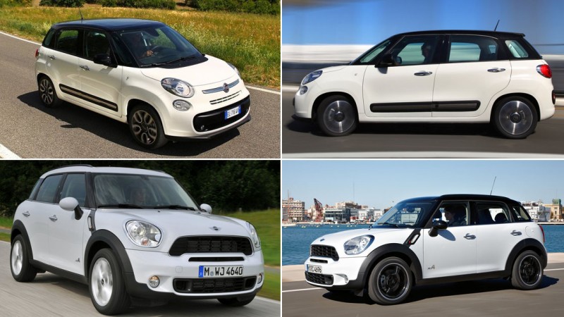 A brit-német típus hasonló méretekkel rendelkezik, s ugyanúgy egy kultuszautóból puffasztották fel tervezői. A Fiat 1,25 literesénél dinamikusabb 1,6 literes, 90 lóerős dízelmotorral, mindkét modellt Autó Pult normafelszereltséggel összehasonlítva listaáron 600 ezer forint a különbség (5,85 vs. 6,45 millió forint), ami a Fiat félmilliós kedvezményével 1,1 millió forintra ugrik. Nem kérdés, hogy a MINI sokkal jobb várható értéktartással, jóval dinamikusabb viselkedéssel és élménydúsabb vezethetőséggel kecsegtet, miközben a Fiat a praktikumban és a helykínálatban képes felülkerekedni drágább társán.