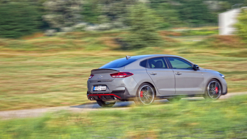 A váltásokat, gázelvételeket hangos durrogás követi, amolyan igazi versenyautós hangulatot idézve – persze a teljesítmény és a tempó is tisztes, ám a szélsőségeket nem közelíthetjük meg az i30 N Fastback vezetőülésében. Ellenben a kőkemény futómű, a minden érintésre remekül reagáló gázpedál, a (talán már túlzottan is) elnehezített kormány és a durrogó, prüszkölő, rotyogó, olykor-olykor ordító kipufogó, az erőt és határozottságot igénylő, ám pontos váltó épp azt a nemmindennapos élményt adja, amire egy sportkompakt megvásárlásakor vágynánk. Mi több, aki nem akar bajlódni a váltások között a gázpedál kezelésével, annak automatikus gázfröccs is rendelkezésre áll, természetesen kapcsolható formában.