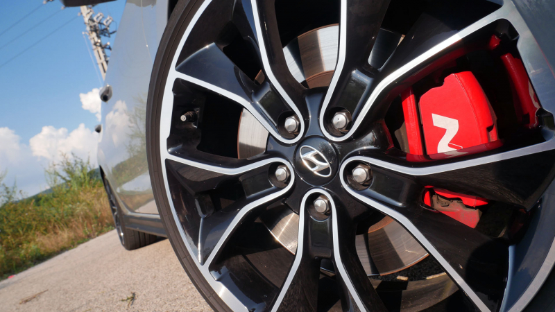 Érdemes tovább borzolni a kedélyeket: a teljesen átlagos kis start gomb nyomására izgalmas morajlással kel életre az i30 N – ez egyébként egyesek szerint már kissé túlzó, még ha belül ügyesen is el van szigetelve az autó. Az alapszinten 250 lóerős, kétliteres, négyhengeres turbómotorra a Performance csomag további 25 lóerőt pakol rá, de talán nem is ez a leghasznosabb elem a pakkban, sokkal inkább az első elektronikus differenciálzár és az állítható kipufogó, nem is beszélve a 19 colos, gyönyörű kerekekről és a nagyobb fékekről. Mindezért 750.000 forintot kér a forgalmazó, ami persze nem kevés, de arányos az érte kapott plusz értékekkel.