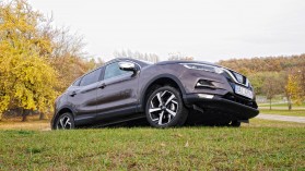 A Qashqai egyébiránt stabil és gyors is a kanyarokban, ráadásul kellemesen kiegyensúlyozott, ám a SUV-kra jellemző feszesség természetesen a magas építésmódnak köszönhetően ezúttal is jelen van. A komfortra még úgy sem lehet panasz, hogy a tesztelt példányt méretes, 19 hüvelykes könnyűfém felnikkel szerelték fel - persze kisebb kerékkel sokkal kényelmesebb lenne a modell, mint ahogy egy alacsonyabb építésű modell egyszerre tud dinamikusabb és komfortosabb lenni. A kormánymű kissé plasztikus érzést kelt, azonban immáron normál és keményebb sport üzemmód közül választhatunk, a közvetlenség hiányát pedig feledteti a jól adagolható fék és a kellemes vezethetőség.