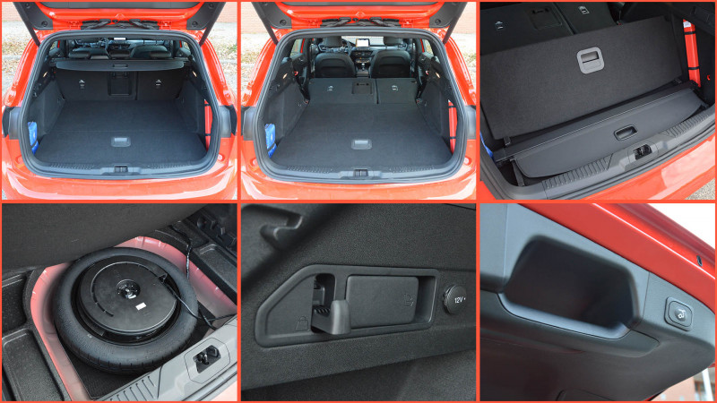 A csomagtér 608 literes értéke kissé csalóka, ebben ugyanis nincs benne a szükségpótkerék, ami Magyarországon minden Focushoz alapáron jár, de ettől függetlenül sincs ok aggodalomra, hiszen így is rengeteg cuccot tud elnyelni a puttony, és mindemellett kifejezetten praktikus is – apropó, az utastérben ugyancsak mindennek megtalálhatjuk a helyét. Felárért akár elektromosan nyíló csomagtérajtót is kérhetünk, de természetesen vannak rögzítőgyűrűk, síalagút, 12 Voltos csatlakozó és kihajtható akasztók a szatyroknak. A padló alatti rekeszbe ráadásul a kalaptartó is elfér, így annak nem kell külön helyet találnunk, ha esetleg útban lenne a pakolásnál. A hátsó üléstámlákat ledöntve teljesen sík terepet kapunk, és mindezt akár a csomagtérből is intézhetjük a két oldalon található kallantyúknak köszönhetően – így egyébként nagyjából 1,65 köbméteres helyet kapunk.