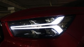 Fénydizájnban sem kell szégyenkeznie...Az autó tengelytávolsága meglepően nagy, 270 cm, amihez a prémium kompakt SUV-ok szegmensében átlagos külső méretek társulnak: az XC40-es 443 cm hosszú, 186 cm széles és 165 cm magas. Ennek megfelelően akár a nagyvárosi dzsungelben is kitűnően érzi magát, könnyen manőverezhető, a veszélyes akadályok és padkák ellen pedig védelmet nyújt például a már-már valódi terepjárókra jellemző 21 cm-es hasmagasság és az abroncsok (épeszű, mondjuk 18 colos felniméretig) magas oldalfala, persze ez az opcionális 20-21 colos felnikre nem igaz. Az utastér mérete éppen elég lehet egy négytagú családnak. A helykínálat alapvetően remek, egy 190 cm magas vezető mögött egy ugyanilyen nagyra nőtt utas is jól elfér, van elég tér a lábaknak, a fejnek és a könyököknek. Hátul viszont nem elég széles és túl alacsony az üléspad, így öt felnőttnek szűk az XC40 – cserébe viszont négynek kényelmes.