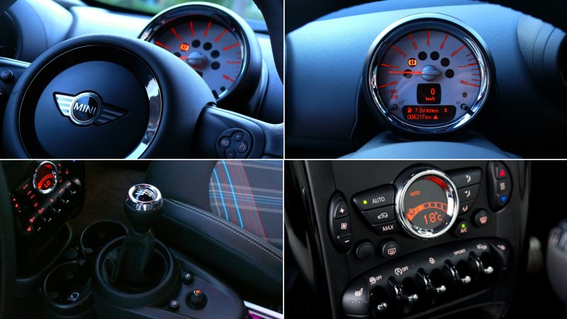 Némi szőrszálhasogatással a vezetői ergonómia sem tökéletes, hiszen a pedálok működésnek útja szokatlan szögben hajlik az átlagos lábtartáshoz, illetve 180 centiméteres magasságommal kényelmesen elhelyezkedve a jobboldali visszapillantó tükör alsó egyharmada is takarásban maradt. Ugyanakkor a helykínálatra egyáltalán nem lehet panaszunk, hiszen a térérzet széltében-hosszában szellős, s 170 centiméteres magasságig még akkor sem kell megsértődnünk, ha a második sorba szorulunk a négyszemélyes autóban. A kupésított Countryman ezen jellemzője széles baráti körben ugyan megalkuvásokat követelhet, de vigasztaljon minket a tudat, hogy így legalább egy főre több jut az alapesetben 330 literes (bővítve 1,08 köbméteres) csomagtartóból.