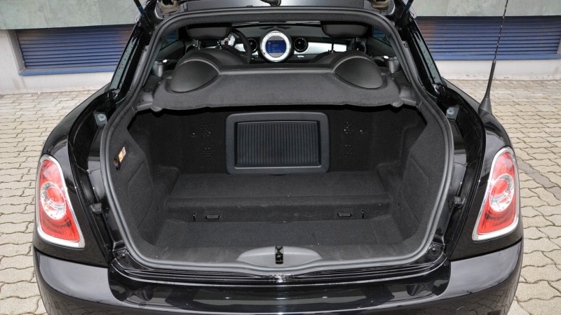 Mozgolódás van hátul - ő az oka.Emellett alaposan fokozták a karosszéria merevségét is, amely a négyüléses verzióhoz képest 25 kilogrammal magasabb, 1,165 tonnás üres tömeg is jelez. A tesztautó rengeteg pluszfelszerelésének köszönhetően a pöttöm Coupé üresen, teli tankkal 1,24 tonnát nyomott mérlegünk során, ami bizony nem kevés az alig 3,73 méteres hossz tekintetében - igaz, a Cooper S verziónak ez sem jelent problémát, de erről később. A hátsó fertályon további érdekességként a 80 km/h-nál automatikusan felnyíló, egyébként gombbal is vezérelhető légterelő jelenik meg, amely csak akkor bújik vissza, ha a sebesség 60 km/h alá süllyed.