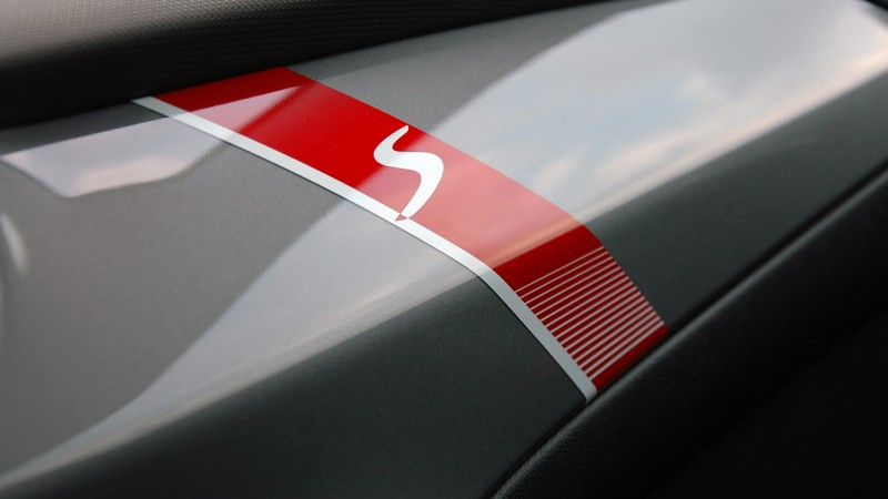 A kivitelezés és az anyagok minősége azonban meghaladja a kategória átlagát, sőt, a több mint félmilliós felárú Recaro sportüléseket bepipálva kiemelkedően kényelmes első sort alakíthatunk ki. A műszerfal jópofa, ergonomikus, és persze a sportosság sem hiányzik belőle. Az óracsoport számlapjának mintázata, a kesztyűtartó felett, illetve a fordulatszámmérőben felbukkanó ’S’ embléma és a feláras, változtatható színű hangulatvilágítás csakúgy fokozza a sportos és igényes, divatos és egyedi miliőt, mint a kormányon, valamint a váltógombon feltűnő vörös bőrbetét.