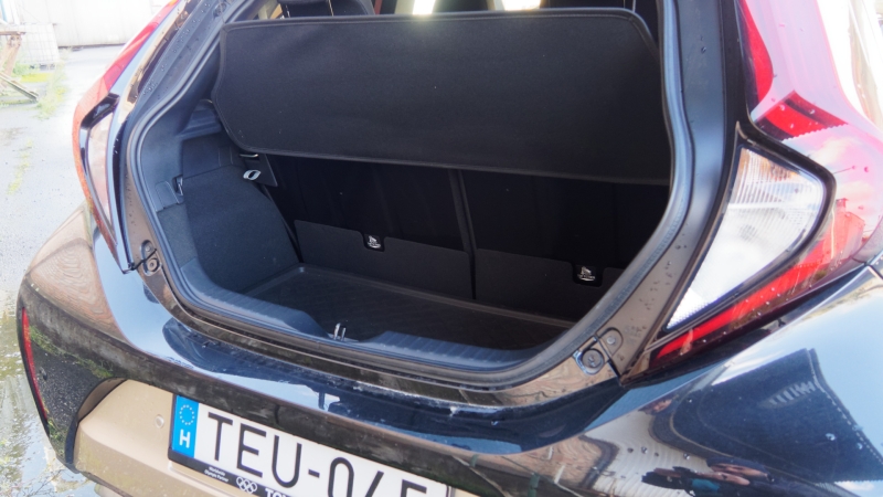 A japánok a Yaris megkurtított TNGA GA-B padlólemezére húzták fel az egy tonna körüli saját tömegű, első sorában kifejezetten tágas, használható méretű csomagtartóval rendelkező autót. A két hátsó ülést elnézve aztán rögtön kiderül, hogy ezt a Toyotát nem kifejezetten családi használatra szánták.