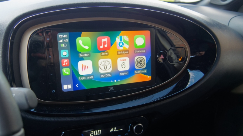 Fentieknél talán lényegesebb, hogy a középső érintőképernyőt sikerült esztétikusan, egyben kissé bohókásan integrálni a középkonzolba. A rajta futó fedélzeti rendszer lényegében jól használható, ezen a felszereltségi szinten ráadásul a telefon integrációja is fejlett: a tükrözés és a töltés egyaránt vezeték nélkül történhet. Apró sirám, hogy a CarPlay fukció többször is nógatásra szorult, volt példa tükrözés közbeni befagyásra is.