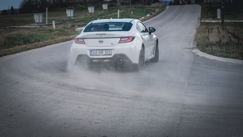 Ami viszont kiváló lett, az a GR86 balansza. Az asszisztensek béklyóitól megfosztva játszi könnyedséggel vághatjuk keresztbe a kis japán sportgépet bárhol és bármikor, ráadásul a jól kiegyensúlyozottság eredményeképpen minden pillanatban jól kontrollálható, könnyed módon. A GR86 igazi kis driftgép, amely közben kicsi, nem kell neki focipálya méretű hely a mutatványokhoz, és olyan tempó sem kell amivel egy rossz mozdulat csúnya következményeket okozna.