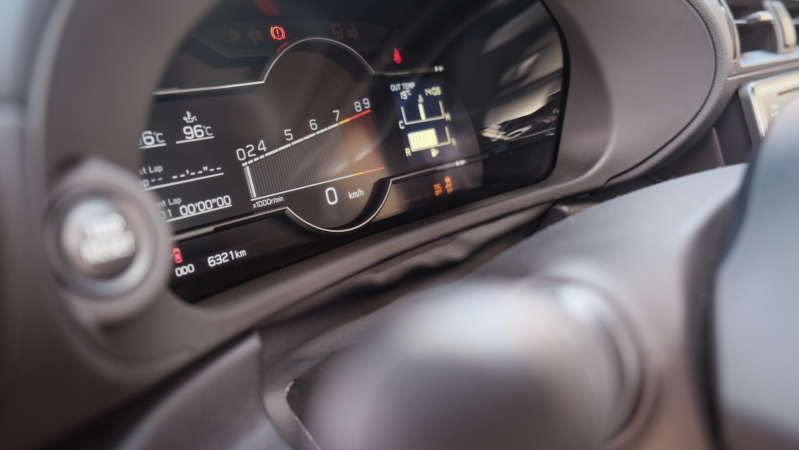 A műszerfal és úgy egyébként az egész belső hangulat viszont remekül rímel az élményhajhász GR86 üdeségére: A piros betétek, varrások jól feldobják az egyébként komor szürkeséget. A műszerfal digitális ugyan, de a sportoláshoz alkalmas grafikákat kapott, inkább egyszerű és funkcionális, semmint látványos. Az az igazág, hogy a vörös szőnyegen kívül sok izgalom és látnivaló nincs is itt: az ergonómia és a funkcionalitás dominál, van Android Auto / Apple Carplay támogatás, és a fontosabb vezetői asszisztensek sem hiányozhatnak.