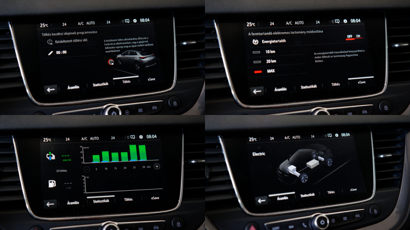 Maguk a töltési lehetőségek sokszínűek hazánkban: vannak fizetős helyek, ingyenes helyek és a köztes otthoni megoldás. A közös nevező, hogy megéri tölteni, ugyanis helytől függően 0-4 l/100 km-es benzinfogyasztásnak megfelelő áramfogyasztással közlekedhetünk. A hibrid hajtáslánc külső menedzsment lehetőségei az átlagosnál szerényebbek: a benzinről történő akkutöltést külön menüpontban lehet nagyjából beállítani, a puszta töltöttség-megtartásra pedig nincs is dedikált gomb, holott ez nagyon hasznos funkció, ha például autópályázást követően közlekedünk sokat a városban, hiszen előbbi esetben a benzines, utóbbi esetben pedig ez elektromos hajtás a hatékonyabb.