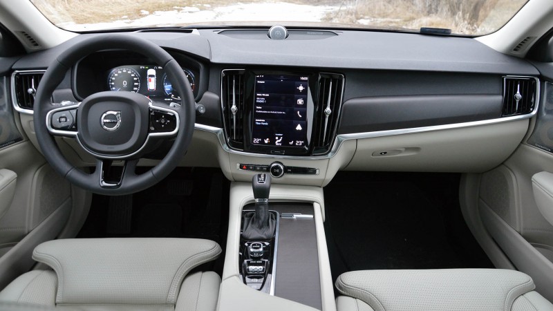 Az utastérbe bepillantva már szó szerint semmilyen változással nem találkozhatunk: sehol nincs feltüntetve, hogy nem egy átlagos V90-nel van dolgunk – legfeljebb a magasabb üléspozícióból jöhetünk rá a turpisságra. Ezzel persze semmi gond, hiszen az anyagminőség továbbra is kiváló, akárcsak az ergonómia – egyedül a kissé nehezen csukódó ajtók tűntek fel mindenkinek, de ennek valószínű oka, hogy alig 300 kilométert futott a tesztautó, így még nincsenek bejáródva. Arról továbbra is lehet vitatkozni, hogy szükség lett volna-e egy külön klímapanelre, de a Volvo rendszerének kezelhetősége egy kis tanulás után annyira gördülékeny – ráadásul az automata klíma jól működik az autóban, így ritkán kell állítanunk –, hogy egy hétnyi együtt töltött idő után már úgy érezzük, hogy mindez csak kukacoskodás. Talán inkább az ülésfűtés esetében hiányoltunk egy dedikált kezelőszervet.