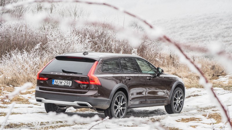 Mindez azonban igencsak csalóka, hiszen a vehemens megindulás után úgy érezhetjük, hogy elfogy egy kissé a lendület, pedig ilyenkor is szépen húz az autó, még ha nem is a kategória leggyorsabbja a maga 7,9 másodperces 0-100-as sprintjével. Az erőt egyébként egy nyolcfokozatú automataváltó juttatja el mind a négy kerékhez – a Cross Country verziókhoz ugyanis alapáron jár az összkerékhajtás. Az Aisin gyártmányú automata szerkezet jó társa a Volvo telekjárójának, akárcsak többi testvérének. A fogyasztással nincs probléma: tesztautónkban alig 300 kilométer volt amikor átvettük, de így is bőven beérte 7,5 literrel a teszthét alatt, ám a normakörön ennél jóval kedvezőbb, 6,2 literes eredményre volt képes.